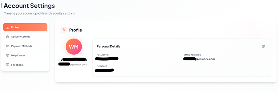The Account Settings page appears under profile section, your personal account information such as name, email address, and contact number.