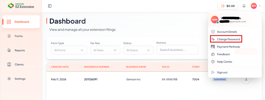 1. Login to the EZ Extension application.