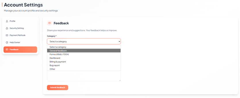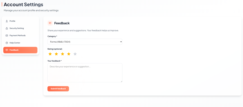 3. To Submit Feedback, follow the steps below to submit feedback: